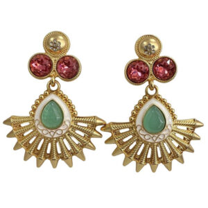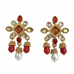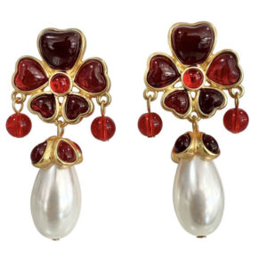 Pendientes Dorados con Cristales Rojos y una Gran Perla