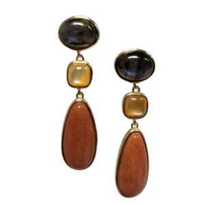 Pendientes Artesanales en Plata de Ley con Baño de Oro y Piedras Naturales